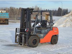 19 ft reach, Enclosed cab, A/C, air ride seat, 2 speed hydro transmission, 3 way steering, Kubota Diesel engine, 47 inch pallet forks, 1 front auxiliary hydraulics, 12.0/75-18 tires