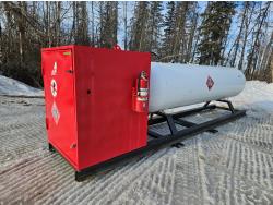 electric pump, hose, dispenser, metal storage cabinet locked on top no key