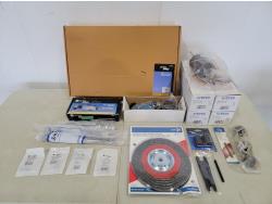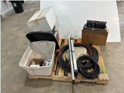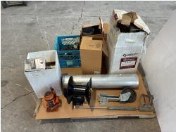 assorted ducting, valves and fittings, wash wand, air hose reel (usused), solvent cans