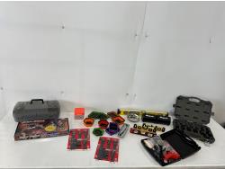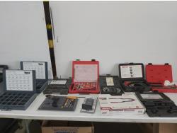 1/2 ft drive ratchet, large qty of drill bits, tap & dies, (2) extractors, antifreeze tester