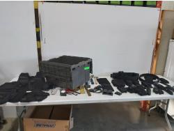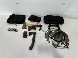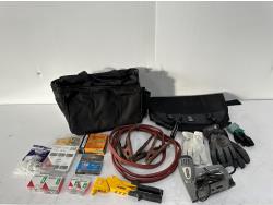 (3) adjustable wrenches, (3) pry tools, (2) BG service pads, Harley Davidson fender cover, Snap-on fender cover