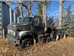 Detroit 8V71 V8 engine, Eaton Fuller 13 speed manual transmission, A/C, spring suspension, 9,000 lb front axle, 34,000 lb rear axles, 10-20 tires