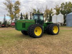 John Deere 7.6 L 6 cylinder 194 HP, engine, 175 PTO HP, 16 speed Quad Range power shift transmission, cab, A/C, 3 rear hydraulic outlets, 1000 PTO w/ 540 reducer, 18.4-38 dual tires
