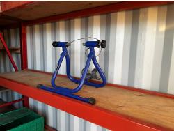 120V fan, mop bucket, bottle jack, drain snake, filing cabinet