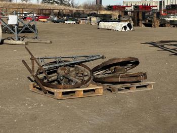 1592 Qty of (3) 44 Inch Vintage Wagon Wheels W/ (3) Hubs