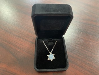 1061 Smartlife Platinum Plated 20 mm Blue Simulated Diamond Snowflake Necklace (Unused)