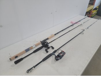 1419 Baitcast Combo, Spinning Reel Combo and (3) Fishing Rods