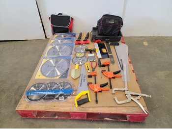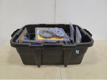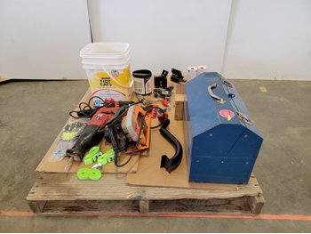 tool box 18 inch x 10 inch x 13 inch, circular saw, reciprocating saw, hammer, ice scrapers