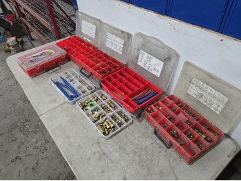 Qty of Zip Ties, (5) Poly Parts Bins, Qty of V-Band Clamps & Spray Bottle