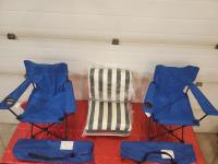 1092 (2) Sunbrella Patio Seat Cushions, (2) Folding Quad Chairs with Carrying Bag