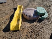2604 Garant Hose Reel and (2) Mastercraft Folding Saw Horses